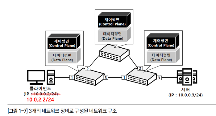 _7쪽(2번째 문단 2번째 줄, 빨간색 텍스트 삭제): 예를 들어, [그림 1-7]처럼 10.0.0.0/24 대역의 네트워크 IP 주소를 가지는 서버와 클라이언트